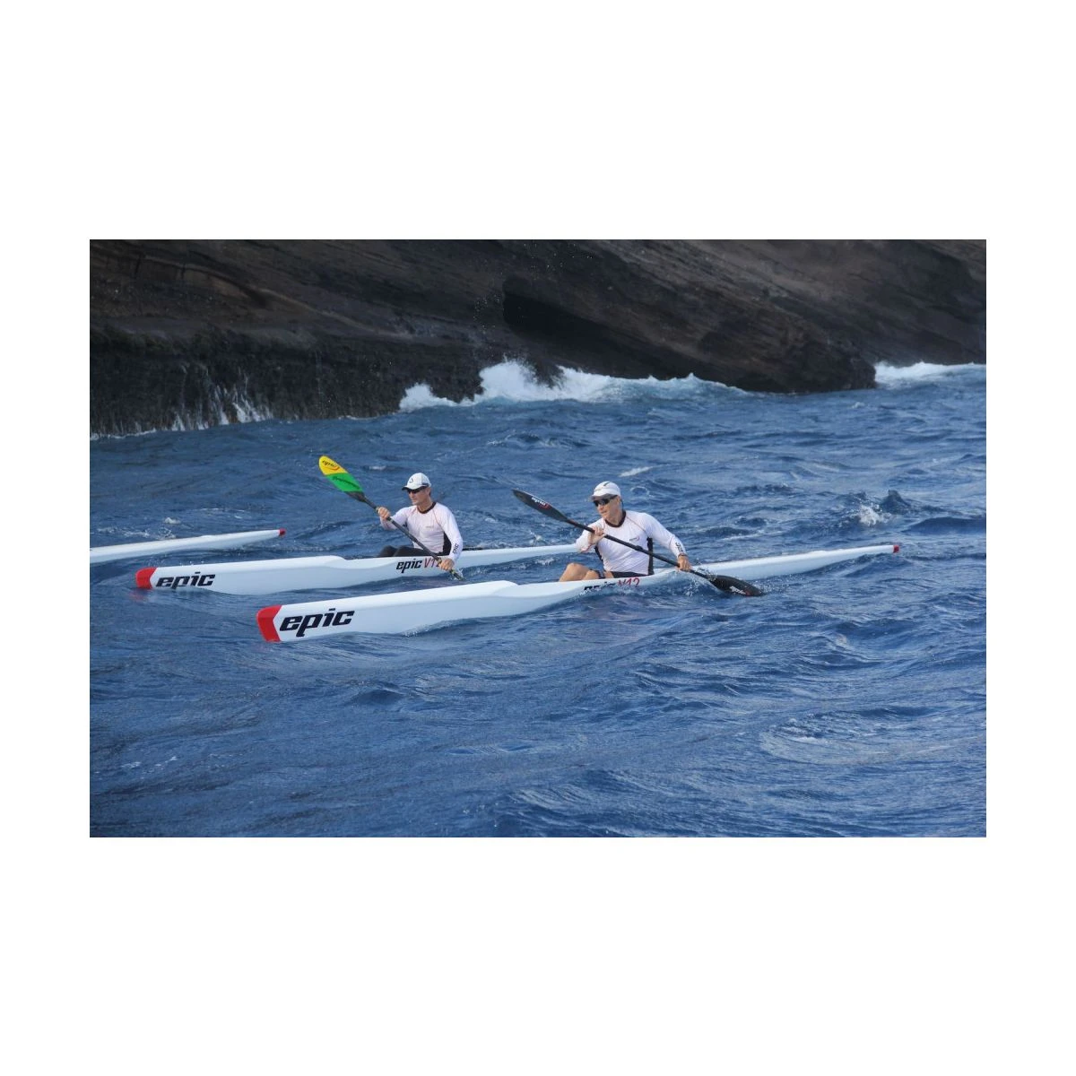 V12 blev oprindeligt designet med henblik på fart og uden at tage hensyn til stabiliteten som V10 modellen. Fartmålinger viser, at den er 3% hurtigere end en V10 på fladt vand, når baileren er lukket. Idéen var, at V12 skulle bruges på mere roligt vand og V10 i større bølger. I praksis lærte de bedste roere hurtigt at ro V12 selv i meget store bølger, så V12 er blevet ny favorit hos mange roere og har da også vundet rigtig mange surfski løb, bl.a. Molokai Race på Hawaii. Senere kom V14, som er endnu hurtigere på fladt vand, men også lidt mere ustabil i forhold til V12. Det er selvfølgelig ikke en fordel i bølger, hvorfor Epic har valgt at videreudvikle V12 med henblik på at gøre den både en anelse hurtigere og en anelse mere stabil og tør i bølger, så du får mere overskud til at trække igennem på åbent vand. Den nye udgave af V12 er blevet et hit fra start og har givet V14 hård konkurrence om at være den foretrukne Epic surfski til de store konkurrencer. V14 er stadig hurtigst på fladt vand, men V12 er også hurtig og mere stabil, hvilket gør den hurtigere i bølger.